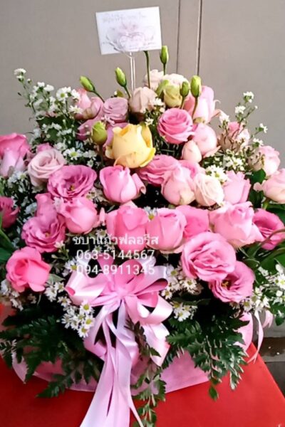 กระเช้าแบรนด์ประดับดอกไม้สด Branded basket decorated with fresh flowers