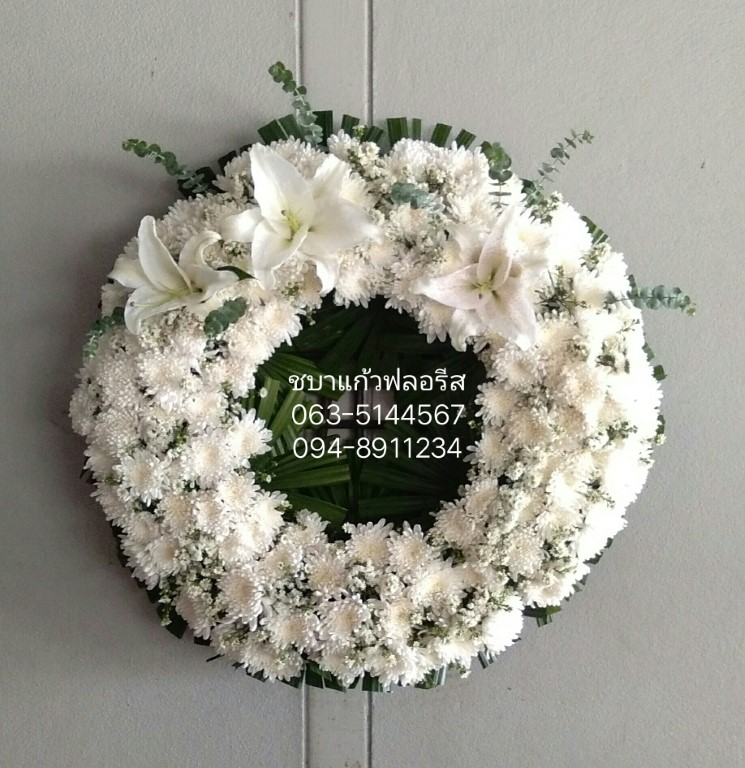 หรีดโดนัทขาวล้วน ฿1,500.00 พวงหรีดดอกไม้สดโทนขาวเขียว ขนาด90×90 เซ็นติเมตร รองพื้นด้วยกับเบ็ญจมาศสีขาวและลิลลี่ขาว แซมใบยูคาร์ หมวดหมู่: พวงหรีด wreath สินค้าที่เกี่ยวข้อง WR02 ฿2,000.00 หรีดโดนัทชมพูล้วน ฿2,000.00 หรีดโดนัทชมพูหวาน ฿1,500.00 หรีดขาวแซมลูกสน ฿1,000.00
